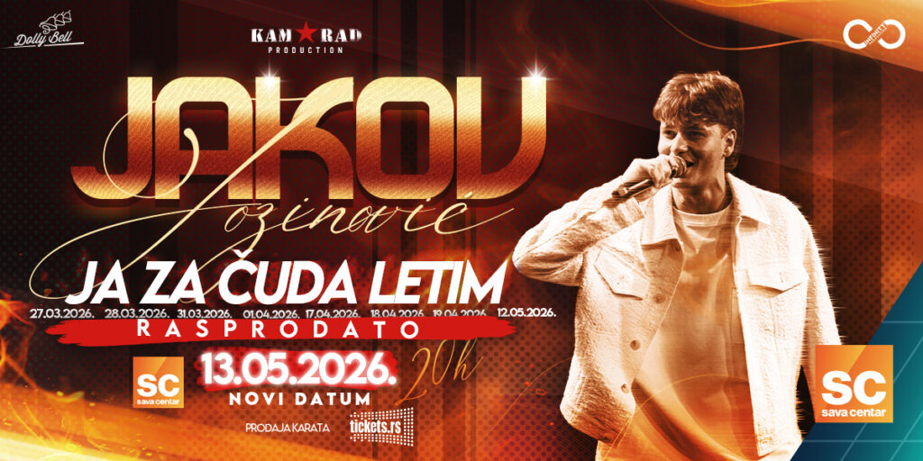 Mlada muzička zvezda, Jakov Jozinović, zakazuje i osmi koncert u Sava Centru! Uz regionalne poznate hitove, ali i svoje numere, Jakov obećava pravi spektakl. Neodoljiva atmosfera i snažna interpretacija pesama, ovu mladu regionalnu zvezdu čine posebnim. Osam večeri u Plavoj dvorani Sava Centra donose energiju po kojoj je Jakov postao prepoznatljiv.