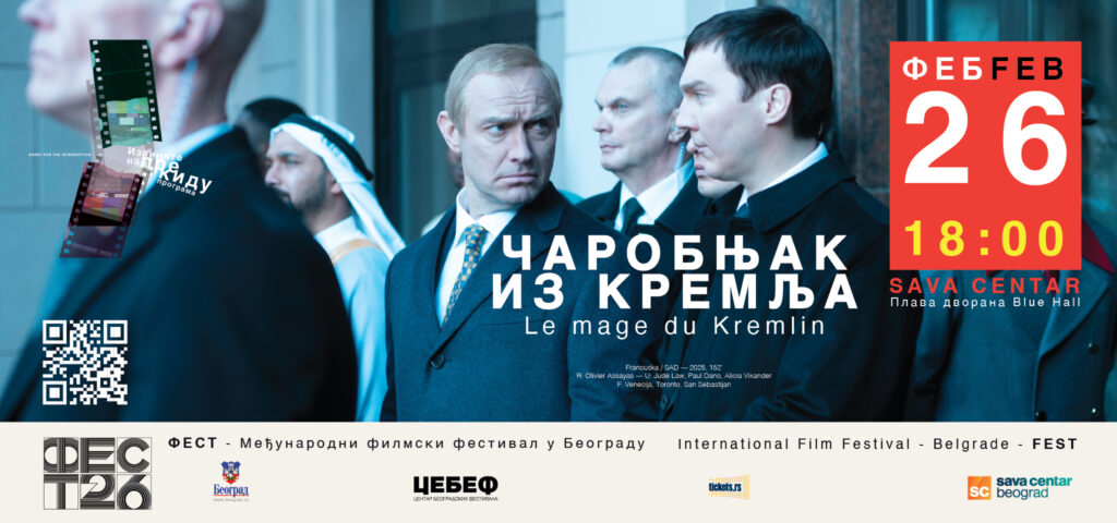 ČAROBNJAK IZ KREMLJA / Le mage du Kremlin Država: Francuska, SAD, 2025. Žanr: Politički triler Trajanje: 152’ Režija i scenario: Oliver Assayas Uloge: Jude Law, Alicia Vikander, Paul Dano, Jeffrey Wright Produkcija: Mime Films, Tanit Films Trejler: Wizard of Kremlin [Čarobnjak iz Kremlja] | Zvanični Trejler | 2026 – YouTube PROJEKCIJA 26.2.2026. | 18:00 Sava Centar, Plava dvorana SINOPSIS Od vizionarskog reditelja Olivijea […]