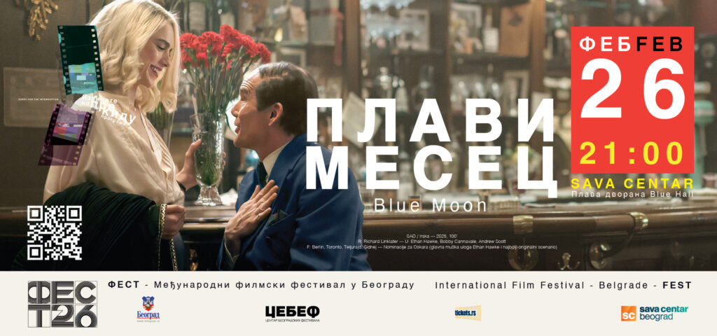 PLAVI MESEC / Blue Moon Država: SAD, Irska, 2025. Žanr: Drama Trajanje: 100’ Režija: Richard Linklater Scenario: Robert Kaplow Uloge: Ethan Hawke, Bobby Cannavale, Andrew Scott Produkcija: Detour Filmproduction, Cinetic Media Trejler: BLUE MOON | Official Trailer (2025) PROJEKCIJA 26.2.2026. | 21:00 Sava Centar, Plava dvorana SINOPSIS „Znaš kako u braku kažu: ‘u dobru i u zlu’? Mislim da sam, kada je moj život […]